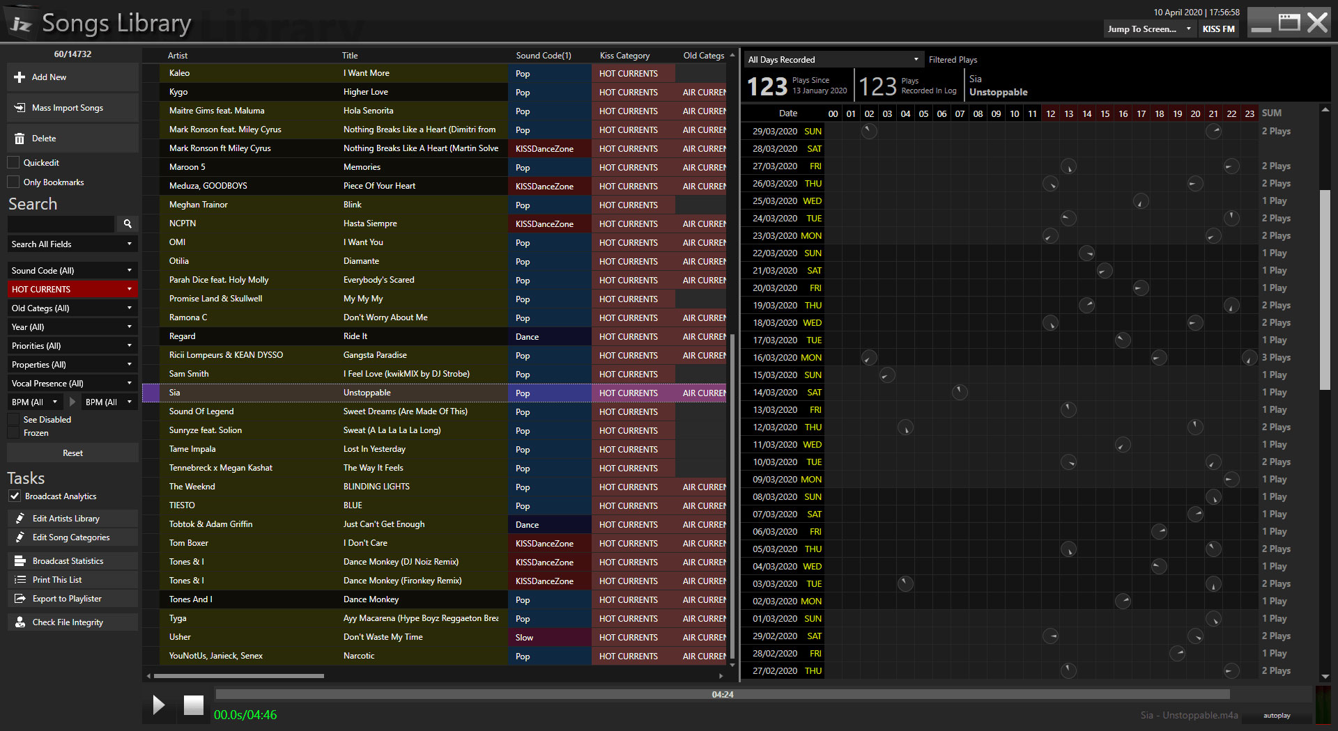 Библиотека песен Jazler SOHO - это полностью оборудованный редактор библиотек для ваших песен, категорий, точек смешивания с множеством представлений и фильтров. Вы также можете мгновенно просмотреть, когда песня играла в последние дни, и некоторые ее статистические данные.