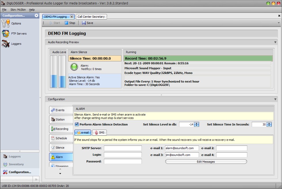 DiGiLogger установливает новый стандарт в программном обеспечениии, в аудио записи, потокового аудио, архивирования, скимминга, тревожных сообщений, подкастинга и хранения, обеспечивая легкое и простое управление каждой из ваших потребностей в записи, с одной рабочей станции.