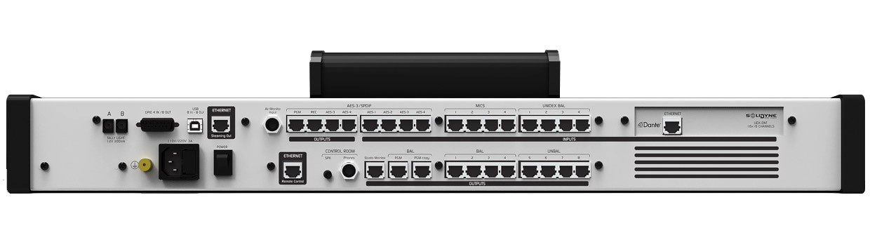 • 16 DANTE/AES67 входов/выходов (при заказе плату DANTE можно заменить на плату с 4 UNIDEX и 4 аналоговыми балансными стереовходами);