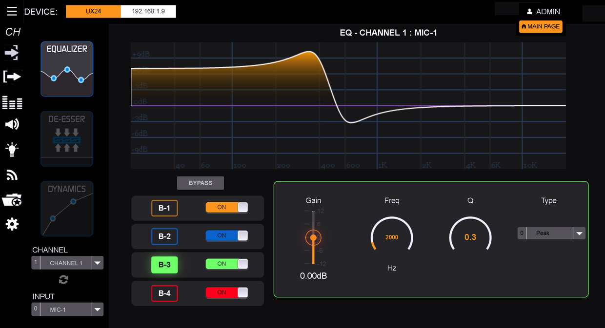 Интерфейс настройки 4-полосного параметрического эквалайзера