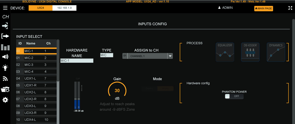 Expert - Позволяет настраивать динамическую обработку на входах, редактировать, сохранять настройки и маршрутизацию в сцены. Не имеет доступа к изменению сцен, заблокированных администратором, и к системным настройкам.