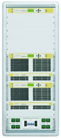 Система электропитания состоит из 3 независимых модулей мощностью по 1800Вт. каждый, работающих с постоянной  загрузкой 75%. Модули построены по принципу двойного преобразования с активной системой контроля фаз. В случае выхода из строя одного модуля, логика увеличивает загрузку других модулей электропитания. Это решение позволяет ограничиться потерями выходной мощности всего на 1 dB при выходе из строя одного модуля и на 6 dB при выходе из строя двух модулей.